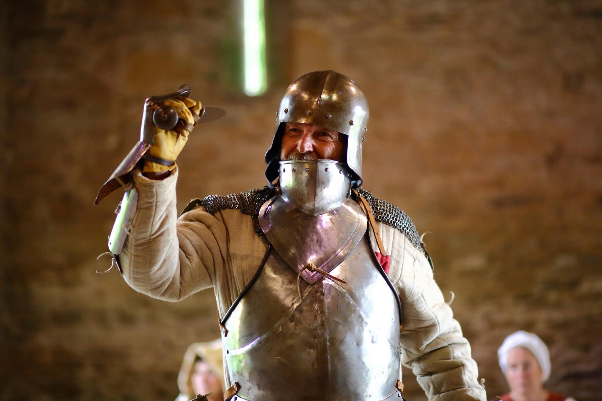 A heavily armoured soldier, often on horse back, a man-at-arms was typically well versed in the art of hand to hand combat. A man-at-arms could be a knight or a nobleman, a member of a retinue or under the orders of a mercenary captain. The terms Knight and Man-at-arms are often used interchangeably but whilst it is certain that all knights equipped for war were men-at-arms, not all men-at-arms were knights.